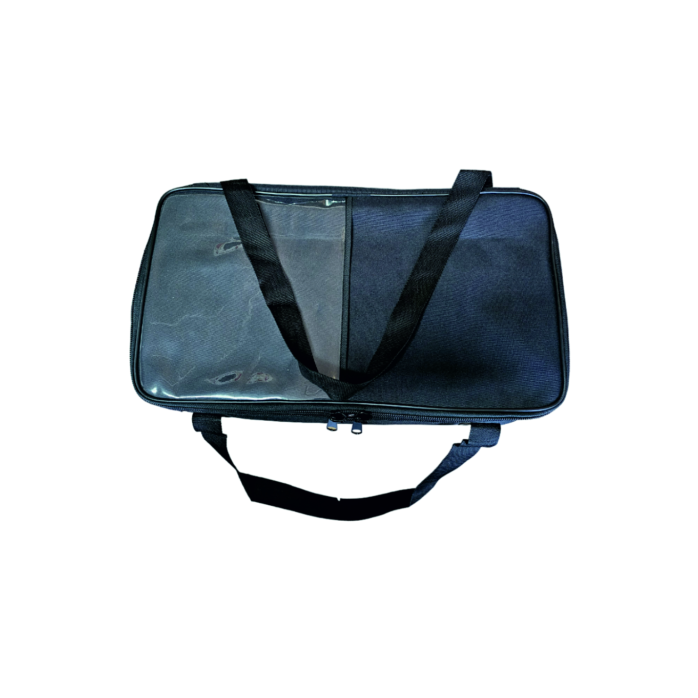 3 way zip open bag 2 carry handles and top clear sleeve pocket